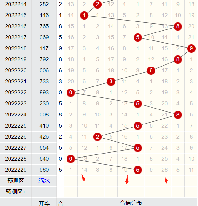 那么还有一个指标就是众人皆知的和值的情况,我们看看近期福彩3D和值走势情况。