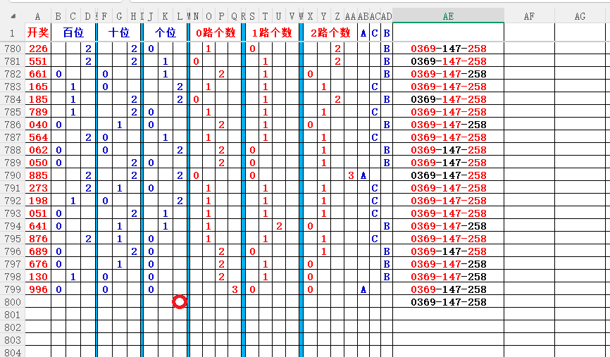 如上图2,012路分析01路尾走比较好,关注0369147尾;