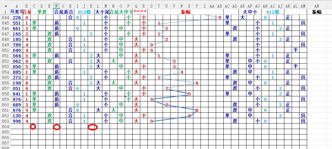 如上图56,012路分析。0369路号出胆,039中出,重点39胆码