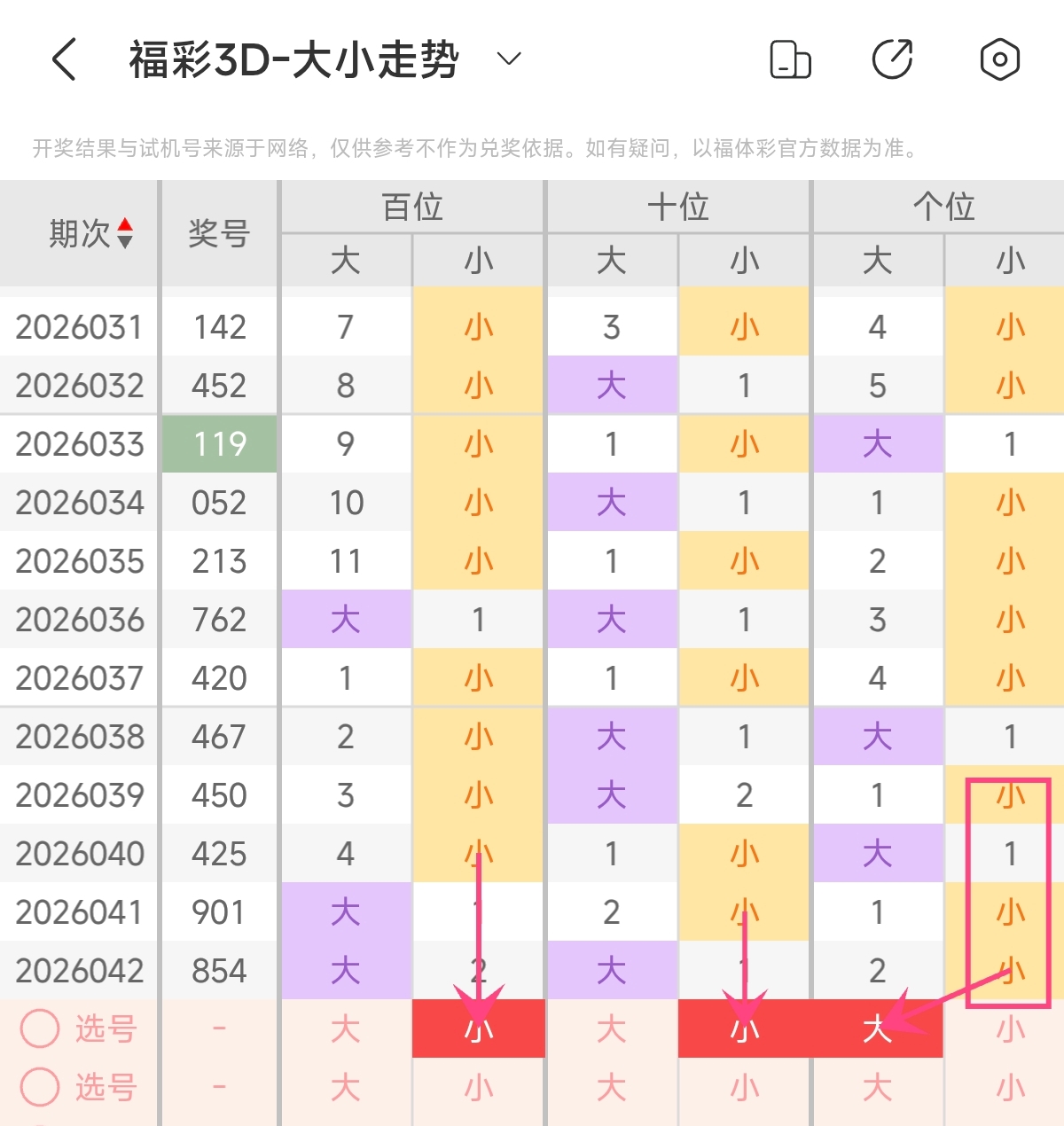首先让我们回顾一下上期福彩3D第2026042期开奖号码为854,为组六形态,大小比为2:1,奇偶比为1:2,跨度为4,和值为17。