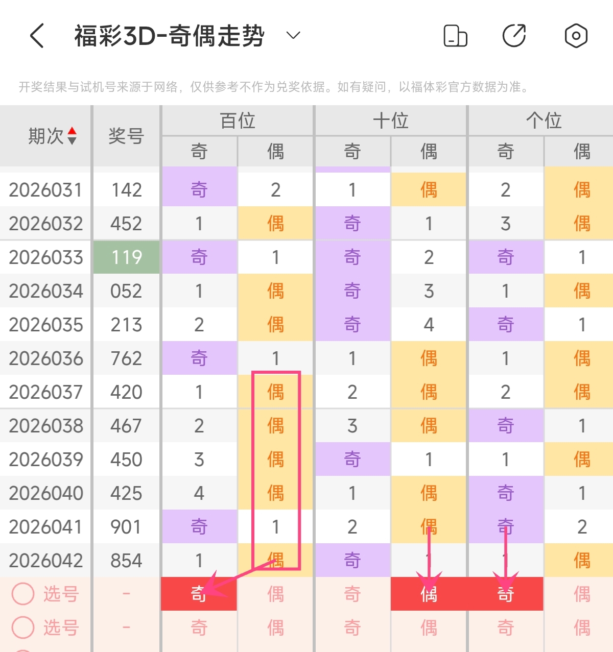 上期奇偶形态为偶奇偶,奇偶比1:2,偶数号码占优,上期奇偶形态推荐正确。根据近期奇偶形态变化来看,上期奇偶形态开出偶数号码占优形态,预计本期奇偶形态会开出奇数号码占优组合。预计本期可关注奇偶比2:1,奇数占优组合 。本期奇偶形态可重点关注:奇偶奇。