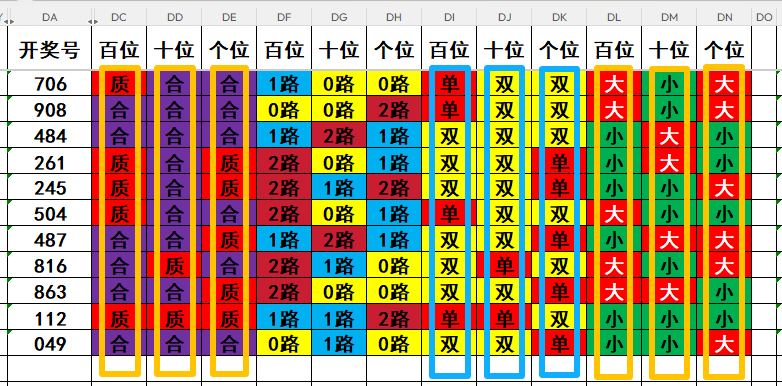 3,目前开奖号个位号码球11天当中,质数(12357)开出了5次,合数(04689)开出了6次,本期重点关注开奖号个位号码球质数的回补!