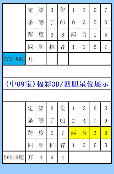 福彩3D第019期综合图文(中09宝),四胆推荐