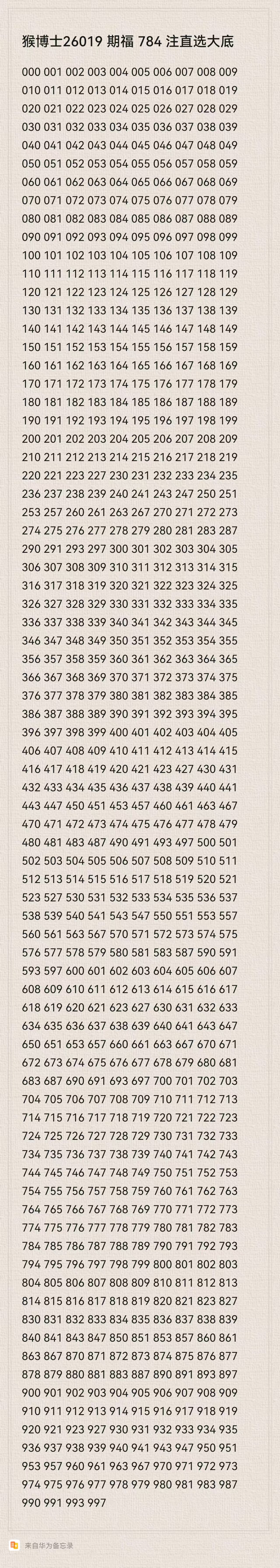 猴博士26019期福784注直选大底:(可以当母底用,然后进行缩水)