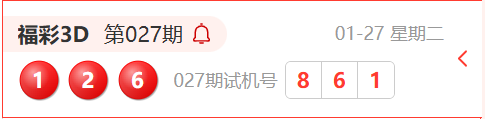 福彩3D第027期开奖结果为:126