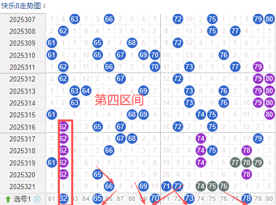 上期四区间开出了7奖号(66.69.71.72.74.75.76)上期的四区开7个奖号呈现了一个递增的趋势,开出的奖号7头回补5个,6头开也是回补了2个,先来看号码62在近 30 期内属于是较热的号码,近期出现频率相对还是比较好一点,偶尔会间隔多期后出现一次,这个号码要注意防守,号码65具有一定的间歇性活跃度较一般比如有时会间隔 3到4期就再次出现,也有时会间隔多期,近期整体出现频率比较温热,近期还是要关注的.号码73活跃度近期比较热,有一定的间歇性。活跃度近期还算稳定,整体走势有一定的波动性.