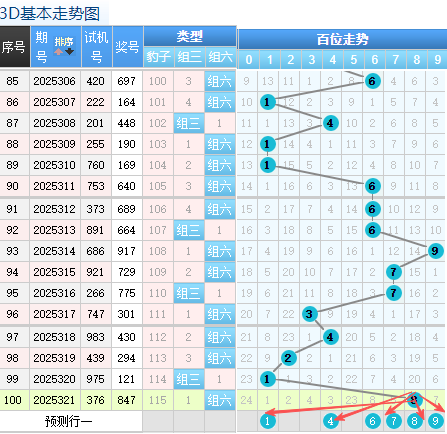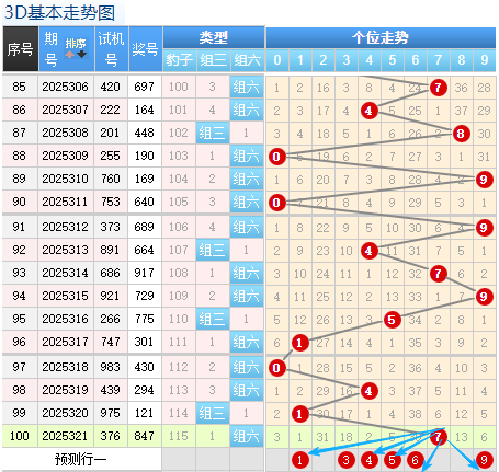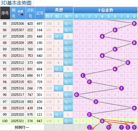 上期的3D个位开7号球,上期开出的是组六按照形态的话本期打组六形态,上期的7号球的落位是个位上的一个热码的回补落位趋势,本期先来看1号球在个位还是有机会继续走出小号落位点这里要注意是一个拉拽的落位点,5号球和6号球是这里的落位点是两个冷热号码的分双分边落位点这里注意防守一码就好了也是这里的两码走势都是非常好看的注意选择一码,再看9号球这里注意最这里的热码二跨度的落位趋势。