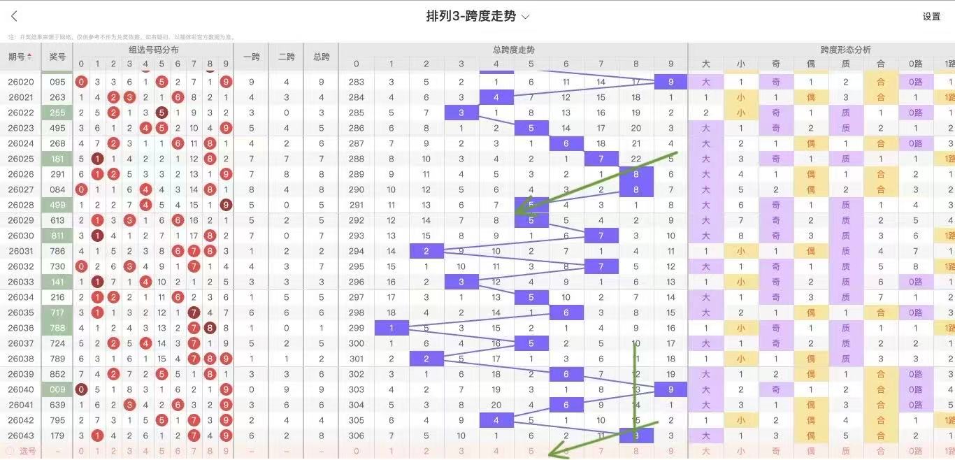 10期内跨度走势为:5-6-1-5-2-6-9-6-4-8,10期内大小跨比为7:3,奇偶跨比4:6,百期内跨度8共开出8次,下期数据:6 2 5 3 1 8 5 近期较热,考虑跨度8开出后容易出大跨度,近期大小规律下小:奇:质,所以接下来继续小跨,偶跨度表现!