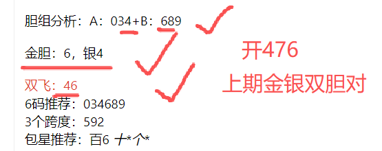 首先来看上期开奖号码为:476,和值为17,上期金银双胆都对等。
