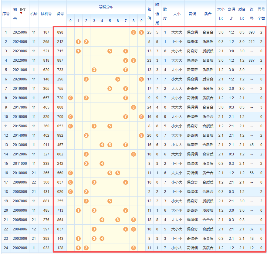 4、通过上述我们得到这期百十个位分析号码:百位23,十位3、个位13