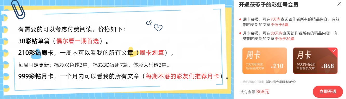 各位彩友们,大家好!我是彩虹号签约作者茯苓子。