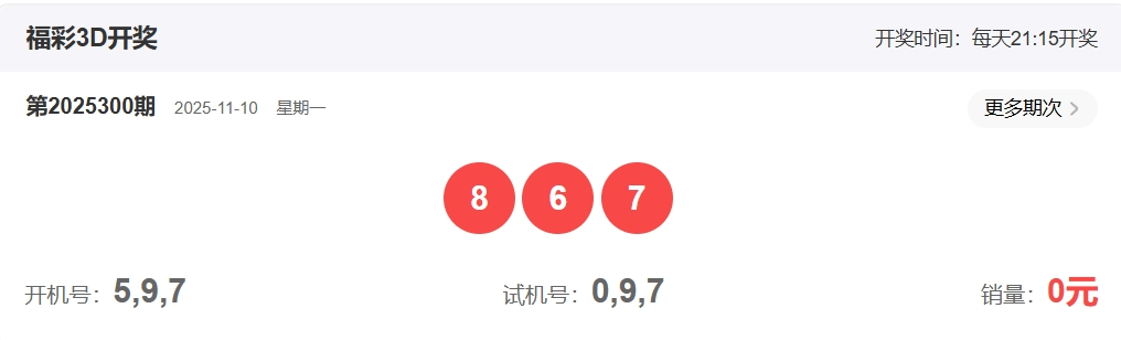 福彩3D第2025300期开奖867