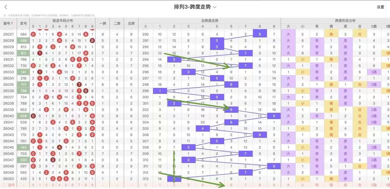 根据走势对跨度观察统计得到以下分析结果: