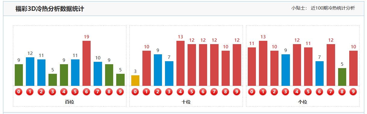 2. 十位分析:上期福彩3D的十位开出了号码9,这是一个大的奇数。从近期的开奖数据来看,十位号码在多个位置上频繁出现,表现出较强的活跃性。然而,值得注意的是,上期的十位号码振幅变化较大且呈上升趋势。本期在十位的分析中,我们预期该位会回补下降,即关注那些与上期相比数值有所减少的号码。因此,本期重点关注号码01345678