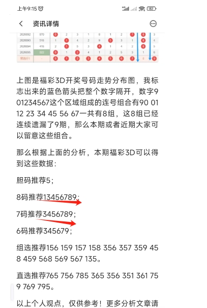 上图是福彩3D上期号码分析文章截图,我最后推荐的8码和7码正确,这个你们去看上期的号码分析文章吧。