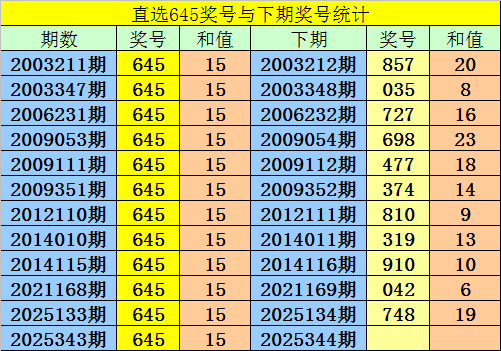 第2025343期3D奖号为:645,历史上该号码直选开出12次,下期号码分别为:857、035、727、698、477、374、810、319、910、042、748。