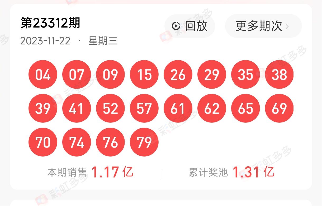 首先回顾上期的开奖号码:04 07 09 12 26 29 35 38 39 41 42 57 61 62 65 69 70 74 76 79