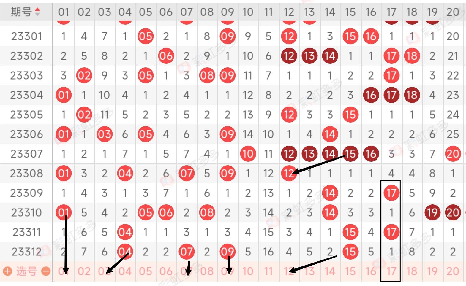 我们先对一区进行一个分析,23311期开出3个号码球和23312期开出4个号码球,一区的整体热度是比较低的,连出趋势的号码球有:号码球04号球的二连出和号码球15号球的二连出,以及注意号码球17号码球的相隔一期开出的走势周期,斜开奖走势周期需要注意号码球08号球的开出和号码球09号球的二连出走势(23299期至23301期号码球09号球三连出),近期的号码球09号球开出的频率是比较多的和预防号码球14号球的开出以及预防号码球01号球的开出!