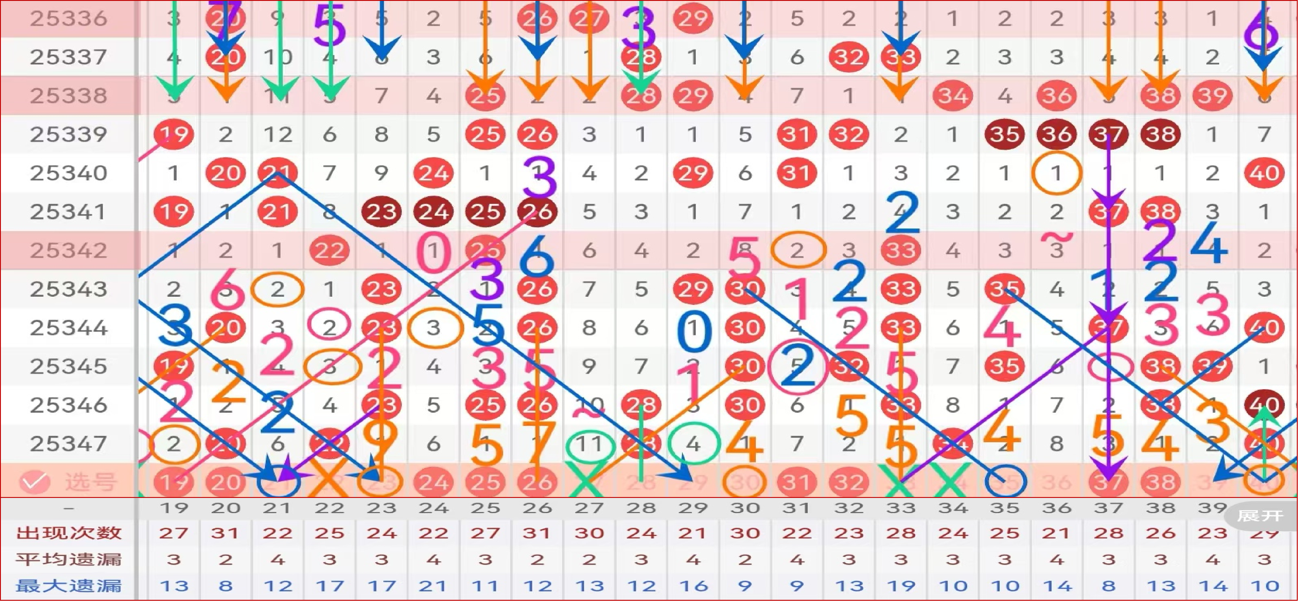 区间推荐主做号码24 25 26 31 32 37 38; 防守号码23 30 35 40;