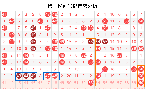 第三区间思路:三区没想到在断区之后爆发出惊人的走势,同样作为断区,一区前半部分仅仅开出两个孤码,而三区出现两个连码走势。我们预想到了这里有不错的走势,可惜两个连码布局也仅仅拿到了两个号码。而后半部分的走位关系尽然在近期内没有直接模仿,子啊一次开出了新的形态,所以对于三区的变局走势,还是多进行思考。