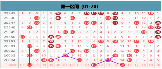 本区上期开出5码的区间布局,那么在本期我们优先考虑的就是区间的形态的出号点位在13 16的位置上我们优先考虑的就是分边的出号点位,12 14 15 17的择一出号,在04 05空位连码的位置上,就是考虑分边出号的可能性,03 06的择一出号,在空位上我们关注的就是区间的小周期的出号点位,在02 07 11的位置上我们选择一码的出号点位,温冷上我们考虑的就是01 15 18 20的位置上做择一的出号,那么其他位置上就不是我们考虑的重点方向了。