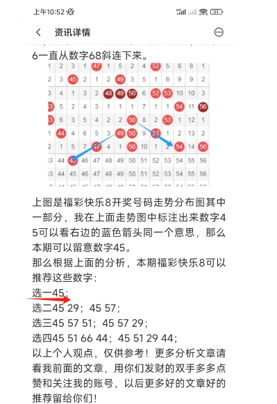 上图是上期福彩快乐8号码分析文章截图,我最后推荐的选一45猜对了,这个你们去看上期的号码分析文章吧。