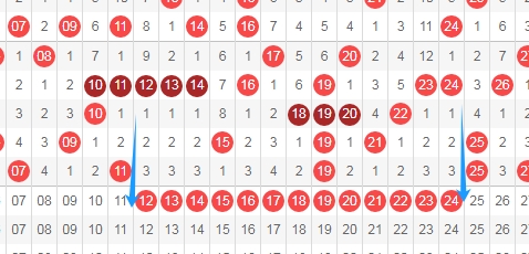 上图是福彩快乐8开奖号码走势分布图其中一部分,我标志出来的数字一共有13个,这13个数字上期只开出了一个数字,最近两期这个区域出号码也只开出了4个,那么本期这个区域的数字可以考虑出3个或者4个吧,个人最看好数字12 14 16 17 21 22。