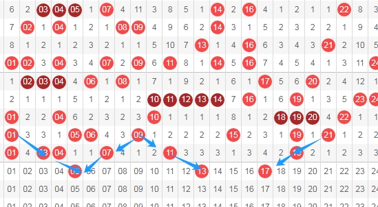 上图是福彩快乐8开奖号码走势分布图其中一部分,我标志出来的数字05 13 17都是跨度二斜连走势号码,数字05一直从数字01跨度二斜连下来,数字13一直从数字09斜连下来,数字17一直从数字21斜连下来,那么这几个数字你们看好不?