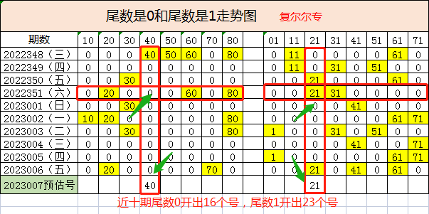 那么让我们来看看今天尾数0和尾数1的号码,上图我今天有标出来星期