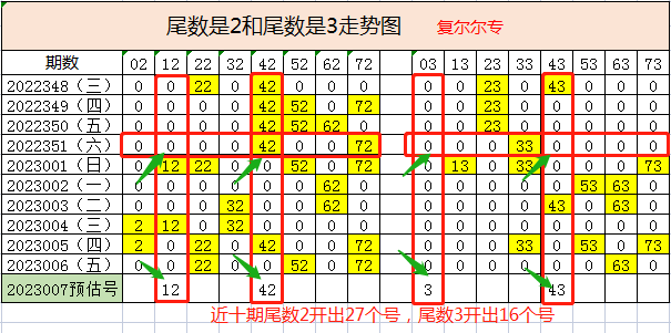 如图所示尾数是2开出了3个号码,昨天我也有说,这个尾数频繁开出