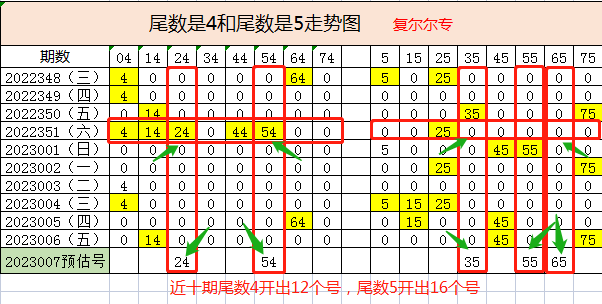 如图所示尾数是4昨天开出一个号码,这个尾数遗漏号比较多:24,34,44,54,74