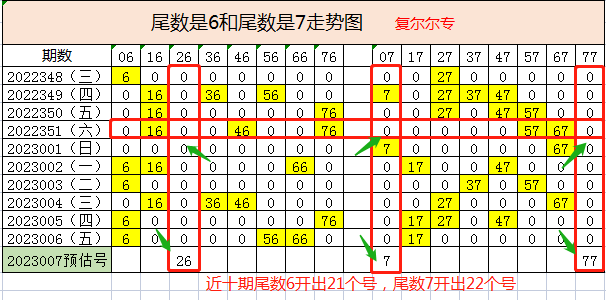 尾数是7昨天开出了一个号码,近十期遗漏数是:7,77,这两个号码在上周六和昨天都没有开出