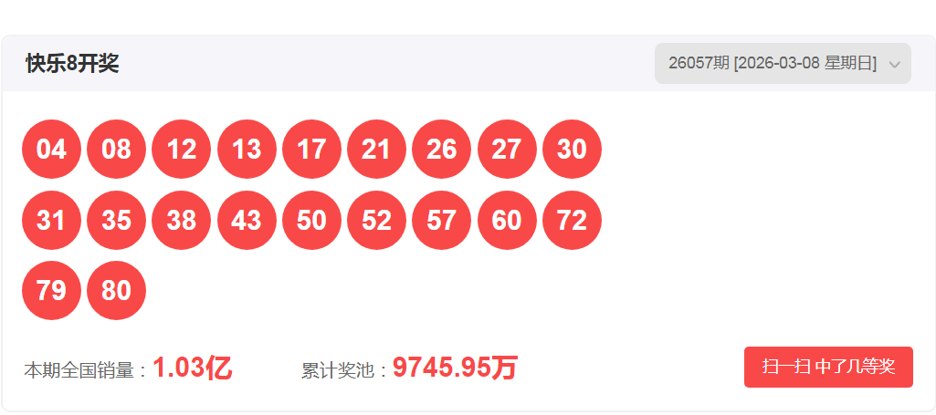 “专注快乐8,开心快乐吧!”您好,我是九尾锦鲤,有幸与您在这里相遇。上期(快乐8第2026057期)分析和推荐部分正确!今天组号上会继续努力!小车方案已精选优化,期望对您今天的选号、组号有所帮助。下面是我关于快乐八2026年第058期的走势研判分析及精选推荐。