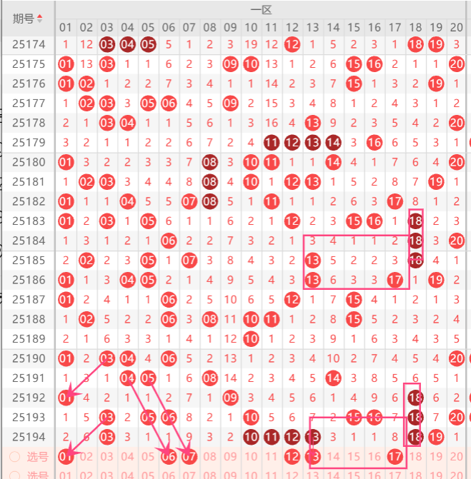 一区在近期的走势形态来分析,上期开出了7码,而且区间开出的形态是四连号和重码走势的,上期小妹在文章中布局到了3码开出,那本期的重码上注意防守03.18中一码走三重机会,还有注意防守13走重机会,至于隔期回补上的05.06.15.16.20中防守1-2码回补上机会,而空位回补上注意防守02.07.17中开出一码机会,至于对称形态上的01.04.17.中开出一码机会,如图所示。