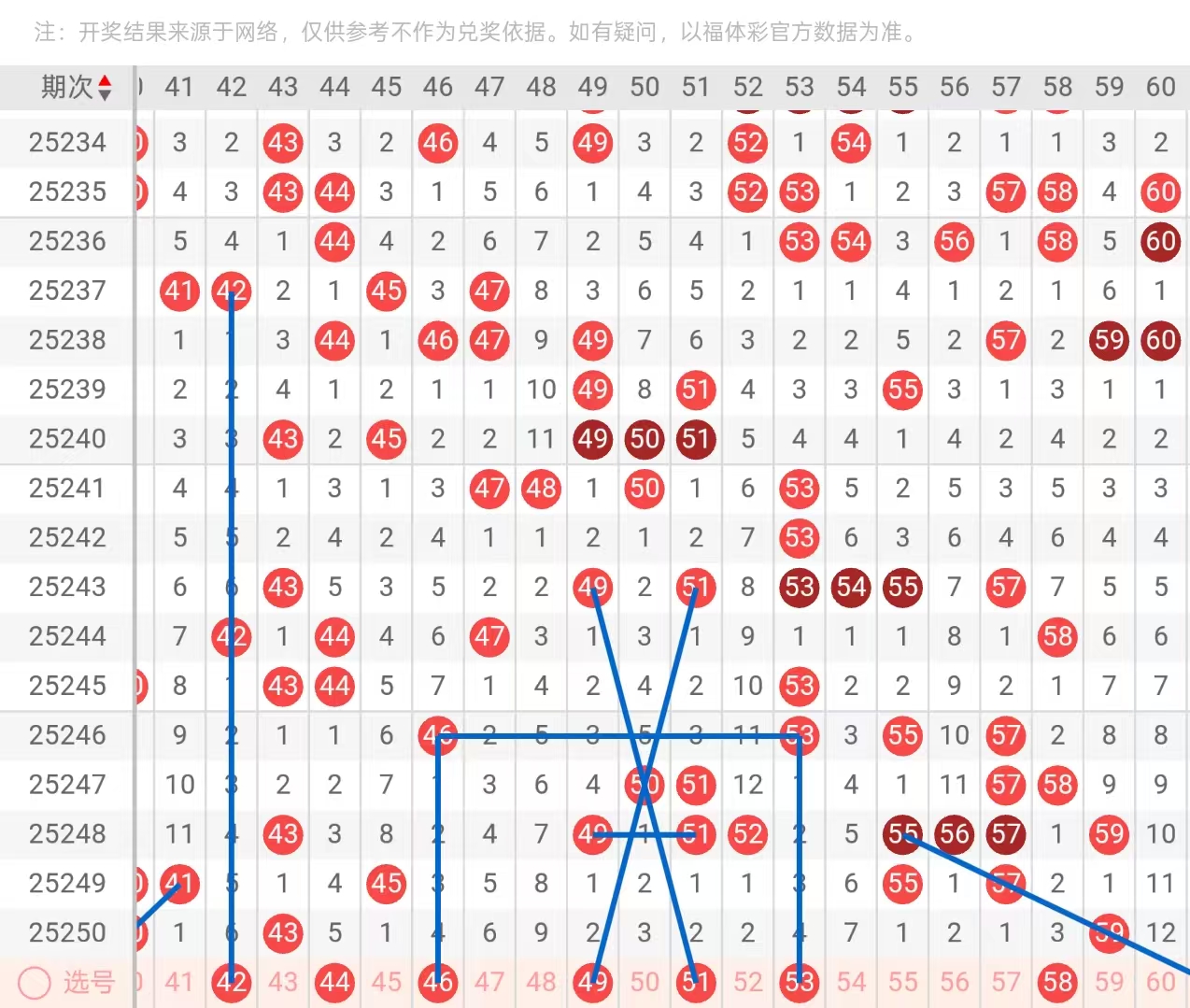 三区:三区间上期开出了两码,呈现出了一个走冷的趋势,本期我们在大跨下面可以去考虑做短期回补,其他的号码可以去做防守即可,四字头的头部位置给出了菱形的43,以及5字头尾部位置59的空一回补。四字头中部位置我们可以去考虑,空四遗漏的46以及53两码可下落一码,其次防守尾部位置50的控三梅花下落,该区间50以及58均为梅花空山,可考虑一码的下落。另外43-59两码均以孤码形态开出,可考虑一码的做重。