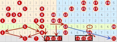 先来看1-20号数字区间分析如下图: