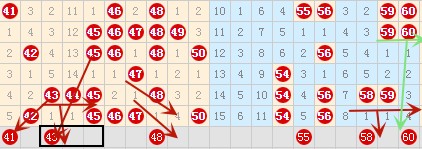 再来看41-60号数字分析区间如下图: