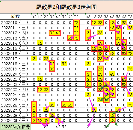 尾数3近20期开奖52个,23,33,53是热态号,重号走势非常明显,