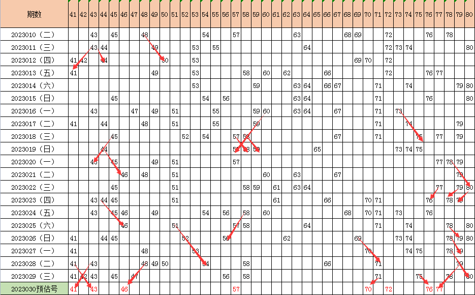 本期看好:10,60,01,41,51,其中41号码可以走出是斜开三连和重号走势