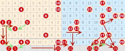 在上期1-20号数字区间开出了8个号码,本期应该还不会转冷,可以作手布防了。上图中1 2这两个连号上期说过是要落号的,果然落了1号数字,那么本期2号数字也会不会跟着落下来呢?回顾历史期数中,很多期的1 3 5 8号数字都是前后出的,前两期1 5 8号数字已经出来了,本期的3号数字会不会在出呢?可以防守一下,因为前面已经出过3号数字了,这里作为防守号就行了。上期开出了10 11号这两个连号,11号数字又是一个冷号。我们可以11号数字的邻号上下手。上期的16 17号数字和前期的17 18号数字出现了重叠现象,那么本期会不会在出现一次重叠现象呢?这里必须防一手。