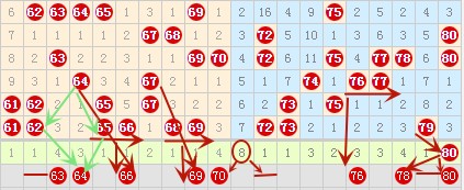 上期开出的号码和我的分析思路是一样的,尤其是61-70号数字区间提到过会不会出现大反弹现象,果然在上期一个号码都没有开出来,近期内出现的大反弹现象有点频繁,不好预测会出现在哪个区间,导致我们不好作战,建议近期内少入手。还有就是同期遗漏值选号思路也是没错的。所以朋友们多看看我文章中分析思路,自己在作手选号,本人的选号作为参考即可。好了废话不多说了。来看分析。