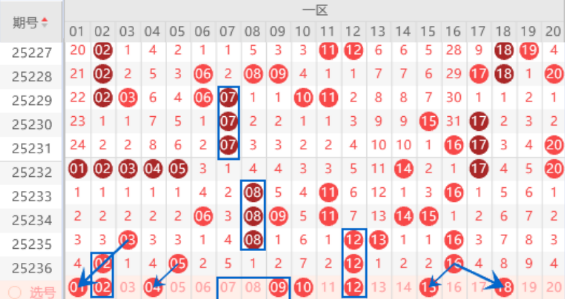 下图为01-20号数字区间走势分析图: