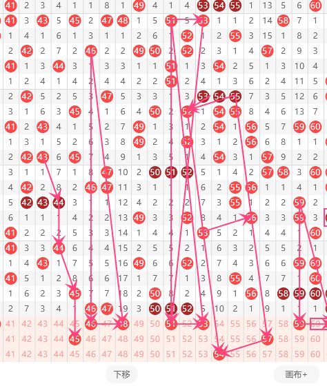 三区分析:【41-60】(走势图标注号码非小黄车大底,请谨慎参考,具体思路