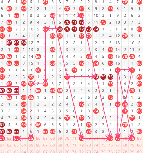 四区分析:【61-80】(走势图标注号码非小黄车大底,请谨慎参考,具体思路将在直播间分享讨论)
