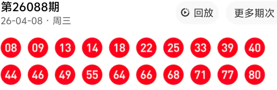 福彩快乐8第89期推荐 上期中出08 09 64