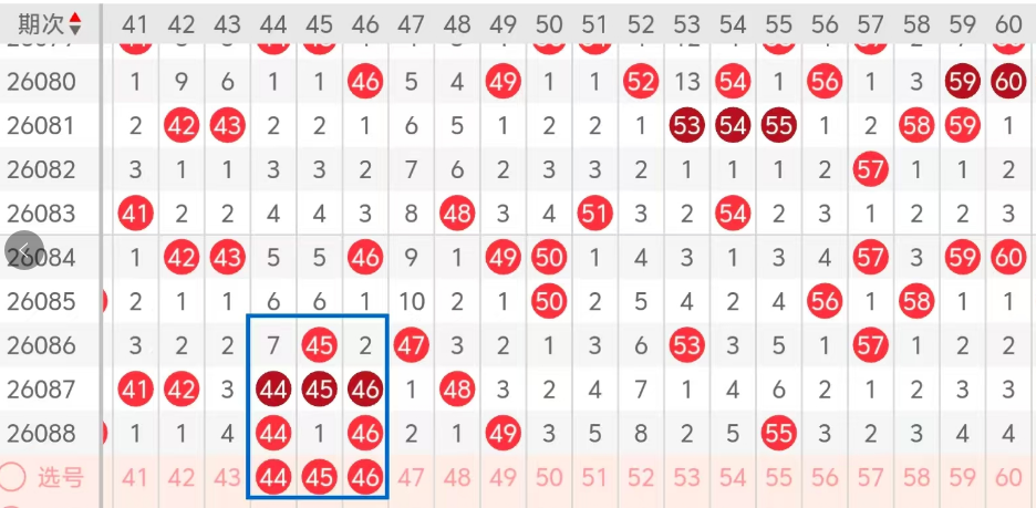 第三区间的走势分析:第三区间上期开出了四个号码球,主要的落号点位在三区间的前半区,走出了的形态走势两奇两偶走势形态,上期三区间的前半区落下了三个号码球,后半区落下了一个号码球,整个三区间处于走冷的趋势,根据三区间的走势规律,今天的三区间我们主看前半区中间热码的落位,主看44 45 46这三个号码球的落位,都有落下的机会,主看44 46组合,44 45组合,45 46组合,这三个号球建议大家打个三胆拖,或者打个三码复二比较稳妥,参考为主!