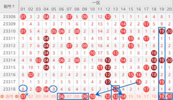 本期的01号数字是属于遗漏8期的号码,本期遗漏8期的号码也是有3个,我们要注意落下一个号码的情况。上期开出了03 04号数字,本期我们可以防守一下出一个号码的情况。本期的09 10号数字我们要注意一下,这里有机会同出的,即使不同出应该也是会出一个的,可以重点关注一下。上期的17号数字开出了,那么本期注意一下14号数字的出号情况,可以防守一下13 14同出的情况。本期的19号数字是属于321走势,可以关注一下。