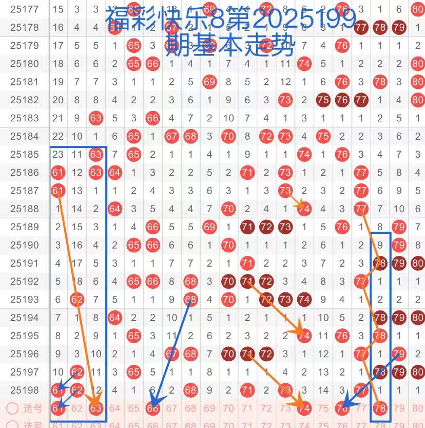 下面是我对2025199期福彩快乐8的分析和预判,希望通过我的分析能让大家今晚大满贯!福彩快乐8上期开奖号码如下图