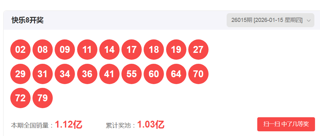 一、快乐八2026015期开奖号码