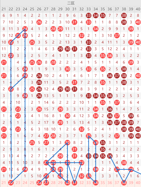 二区间推荐:22、26、27、30、31、34、38。